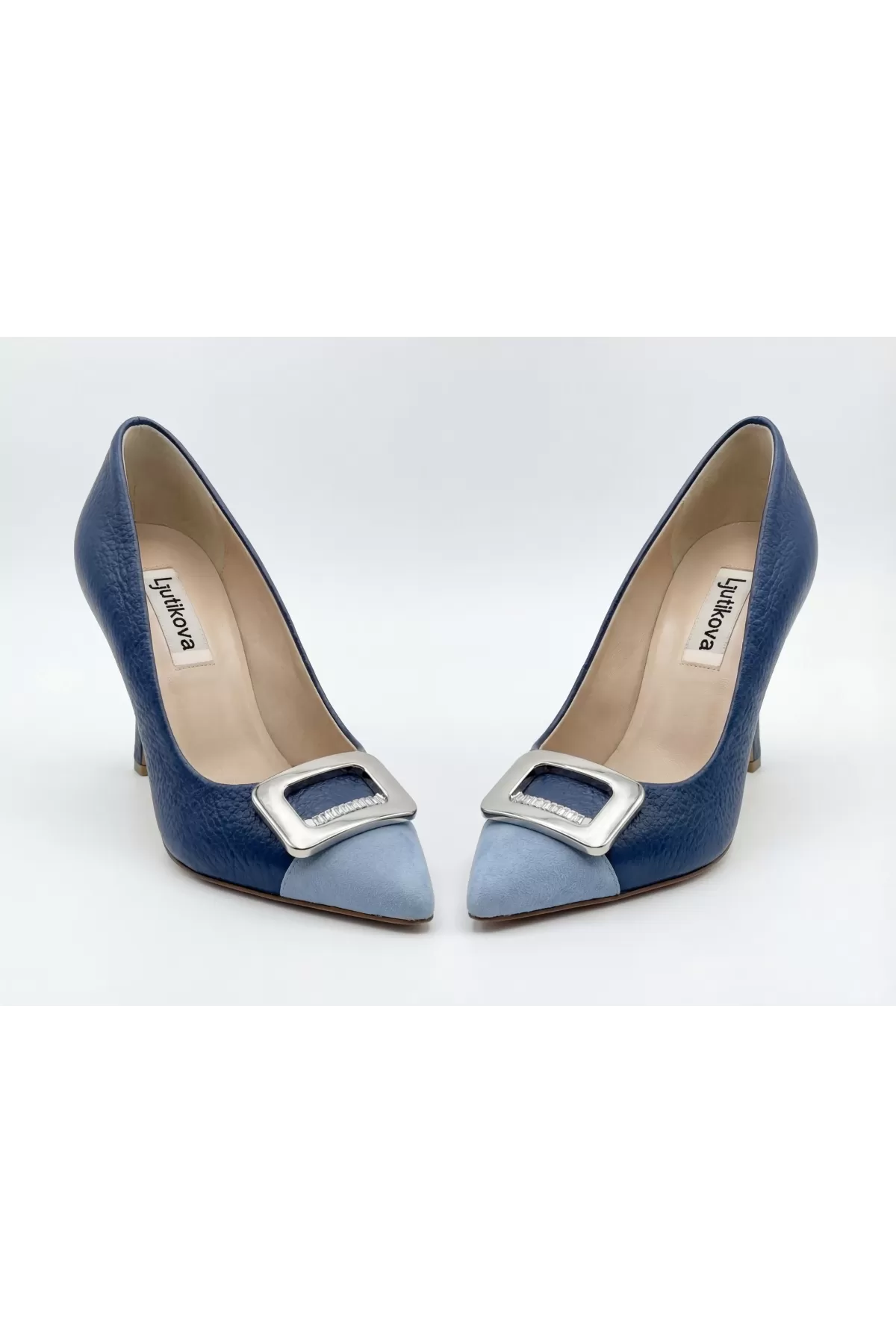 Designed to feel as good as they look, these comfortable high heel shoes gently support the foot, making them ideal for extended wear throughout the day or evening. The deep navy blue leather features a modern yet timeless character, while the polished metal buckle detail delivers a refined luxury accent.